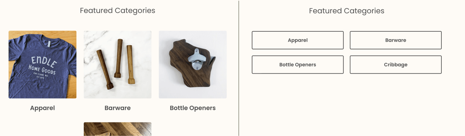 Many sellers have requested the ability to still have featured homepage text without showing products or categories. It’s now possible so you can have a more minimal homepage, with a high impact feeling when it’s paired with a welcome/hero image.